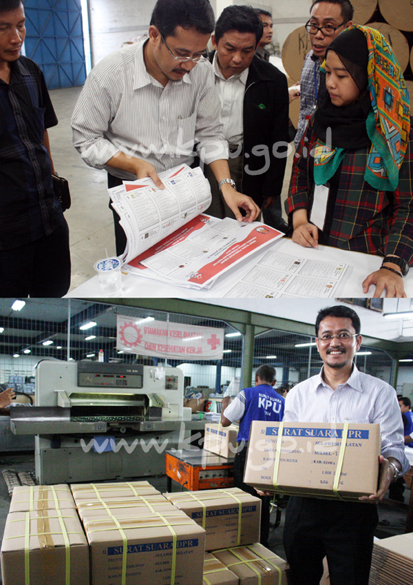 Bandung, kpu.go.id- Komisioner Komisi Pemilihan Umum (KPU) Ferry Kurnia Rizkiyansyah, Senin (10/2/2014), memeriksa proof surat